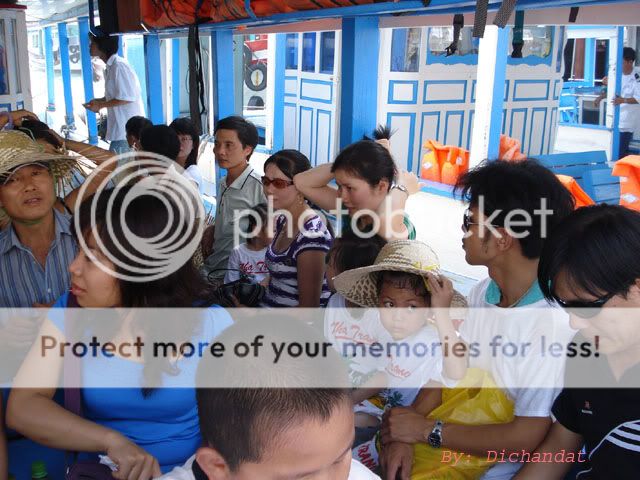 Ở Hạ Long cũng Vịnh, cũng cảng, nhưng việc tàu “ăn khách” thì dễ dàng và thuận lợi hơn ở đây nhiều. Chúng tôi chọn mạn tàu để ngồi cho dễ ngắm cảnh và cho mát, mọi người đã yên vị. Tôi nhìn khắp lượt, trên tàu này có đoàn chúng tôi, đoàn của Gia Lai, đoàn của Bắc Ninh, có hai người Úc, hai người Hàn. Mấy người nước ngoài họ ngồi yên chỗ, họ im lặng ngắm cảnh, họ nhìn mấy người Việt cứ lăng xăng, thi thoảng họ mỉm cười chào thân thiện với ai đó đưa mắt nhìn họ. Mấy người Việt của các đoàn thì cứ lăng xăng, hết đổi chỗ, đến chọn chỗ, hết sắp xếp thứ này, đến dọn dẹp thứ khác với cái đống hành lý của họ. Nói chung là cũng...nhộn nhịp.