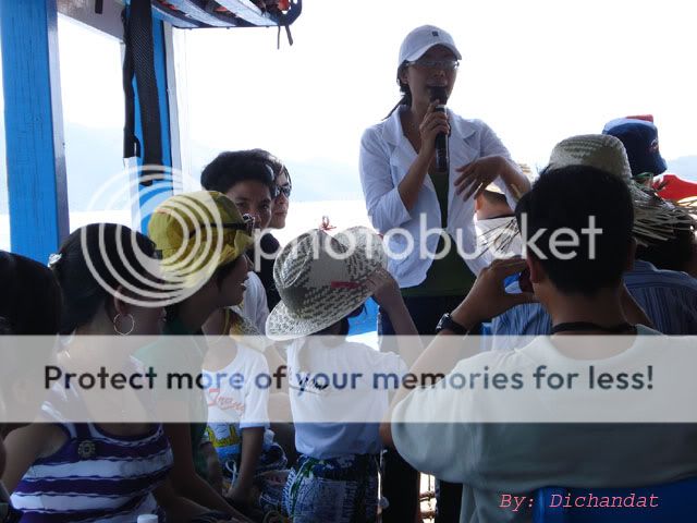 Tàu bắt đầu ra khơi, khi mọi người đã yên vị cô bé HDV bắt đầu thao thao bất tuyệt.